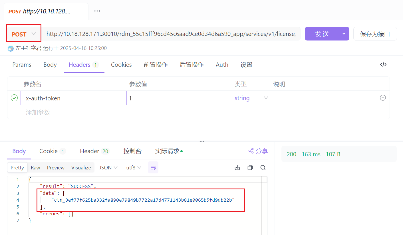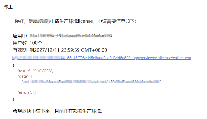 http://{服务的IP地址}:{服务的端口号}/rdm_{应用的唯一标识}_app/services/v1/license/collect-esn调用接口,http头添加x-auth-token值为1,获取到的一个唯一编码