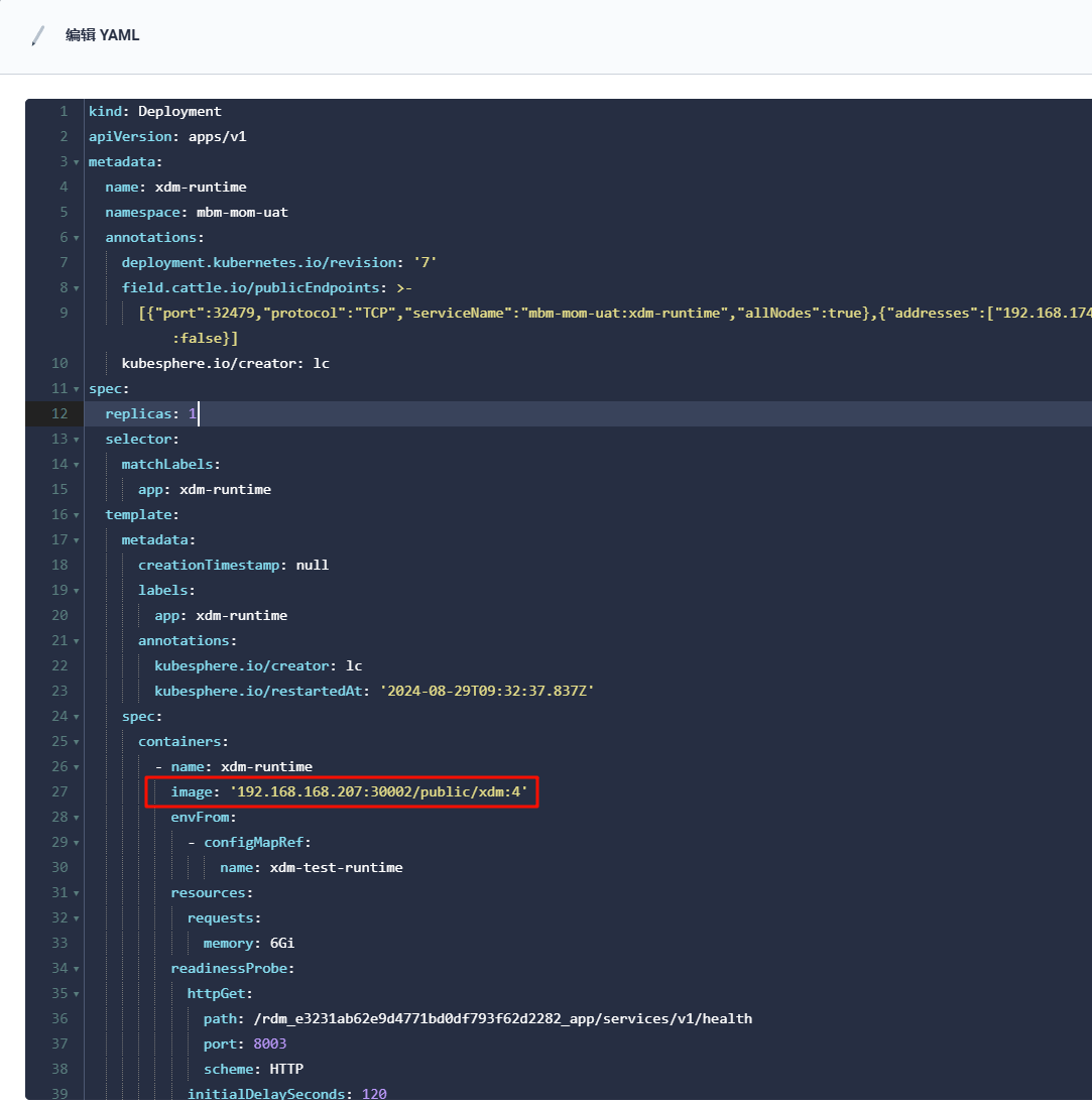 在K8s管理工具中修改pod镜像版本,重启pod