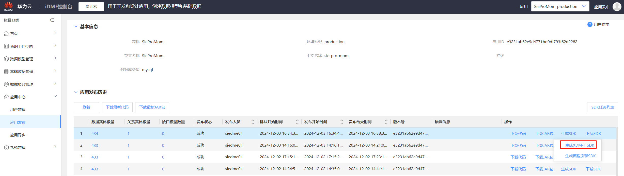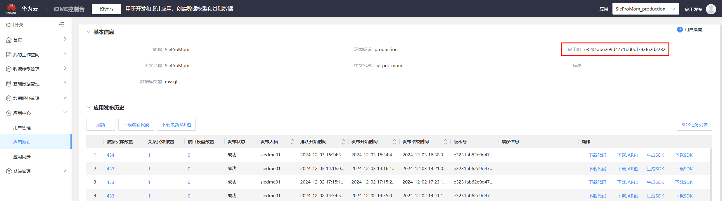 进入应用发布页面